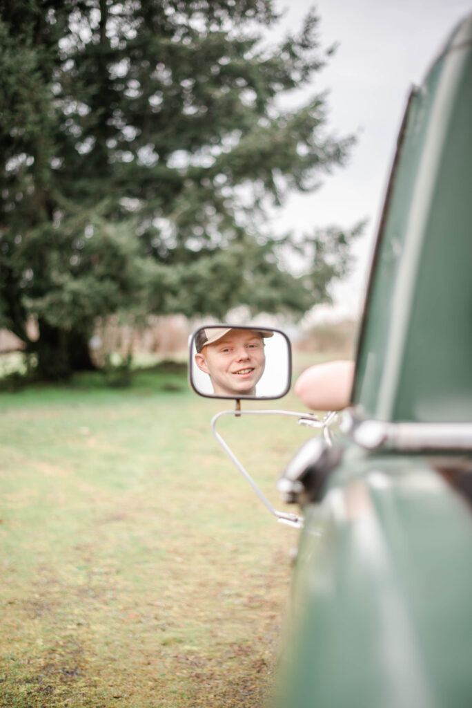 Using a vintage truck helps create a vibe. Is he a guy who loves to be outdoors? A vintage truck will feel right at home. Does he have a thing for the retro look or a love for adventure? The right truck can totally set that scene. Girls love having trucks in their shoots too! It’s all about capturing their story.
